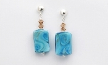 Fused Blue and Gold Glass Earrings with Swarovski Crystals with Sterling Silver