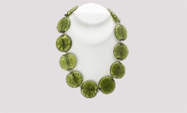 Fused Green Glass, Swarovski Crystal and Sterling Silver necklace