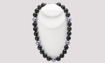 Faceted Onyx and Mother of Pearl with Sterling Silver with Crystal Clasp Necklace