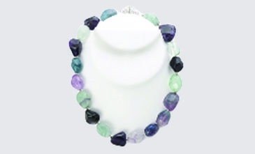 Amethyst and Green Rough Cut Flourite Stone with Sterling Silver and Crsytal Clasp Necklace