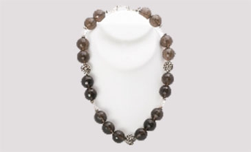Faceted Smokey Quartz with Detailed Bali Silver Beads and Sterling Silver Necklace